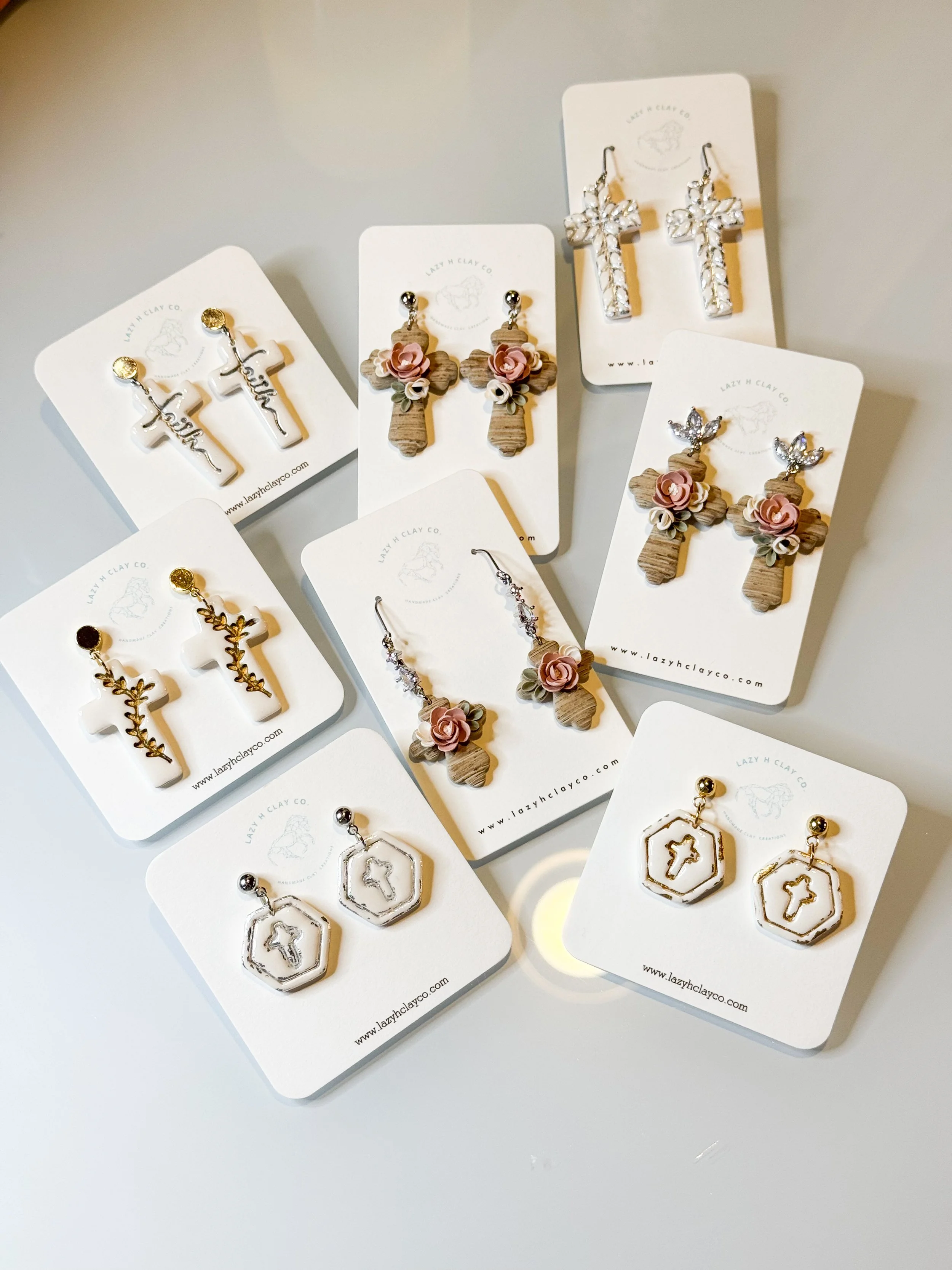 This Easter collection is centered on the reason for the season. Faith filled pieces designed as quiet reminders you can wear year round, not just on Sunday. Every pair is handmade and lightweight, created with care from start to finish, and made to feel easy and comfortable for everyday wear. Simple, meaningful, and rooted in truth